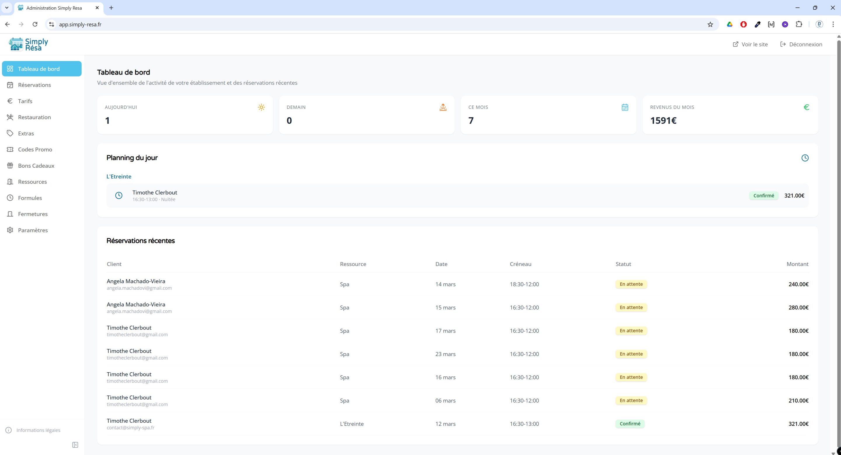 Testez vous-même Simply Resa pour voir comment il fonctionne ! Pas besoin de carte bleue, ni de renseigner ses informations personnelles 🙂